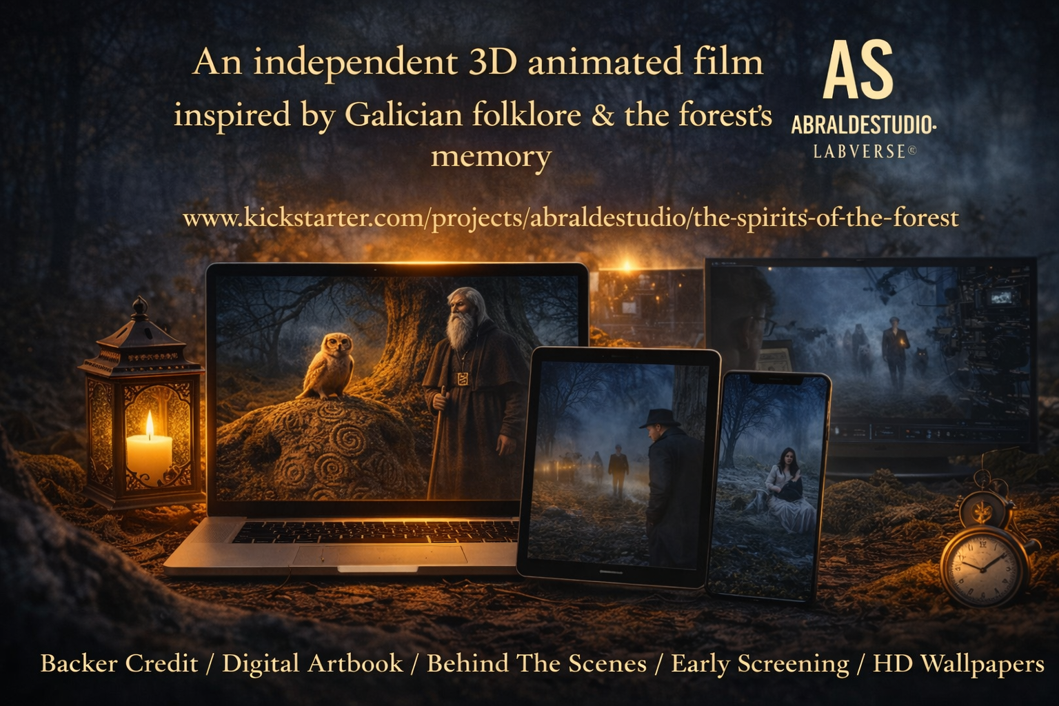 The film is an independent production inspired by Galician folklore and the memory of forests. This campaign focuses on a key development phase of the project, including pre-production, visual definition, and the creation of a cinematic teaser.